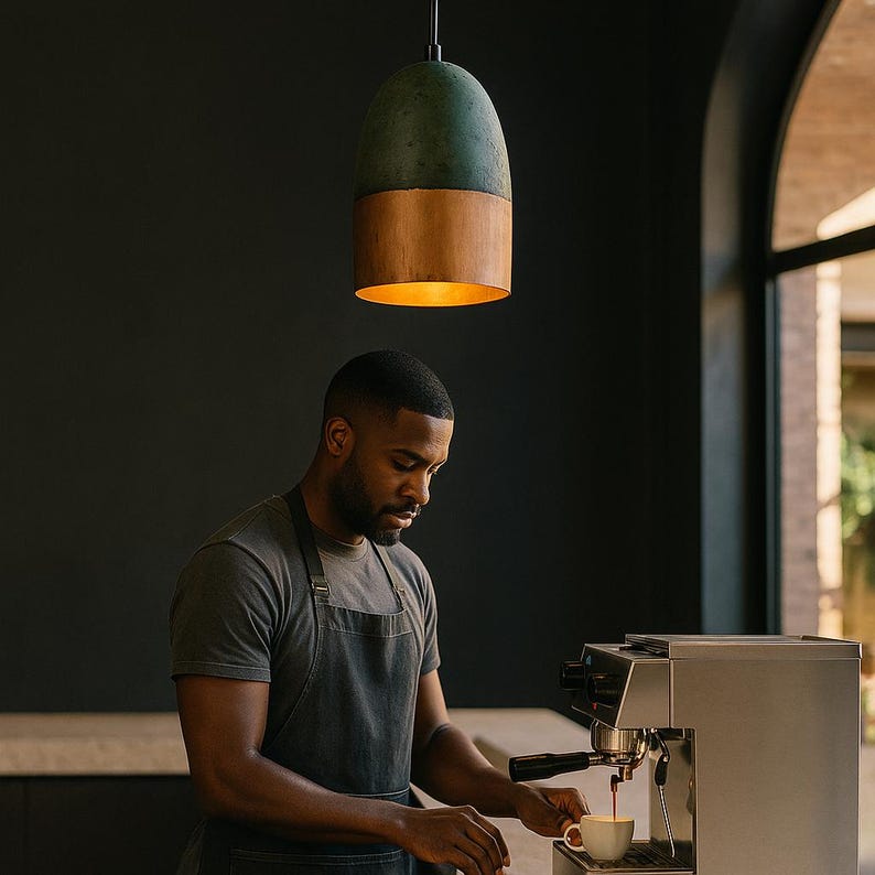 Crafted by skilled Moroccan artisans, the natural oxidation process ensures no two pieces are the same. Whether installed in a modern kitchen, creative studio, or a cozy café, this pendant casts a warm, focused glow perfect for intimate ambiance or sculptural impact.