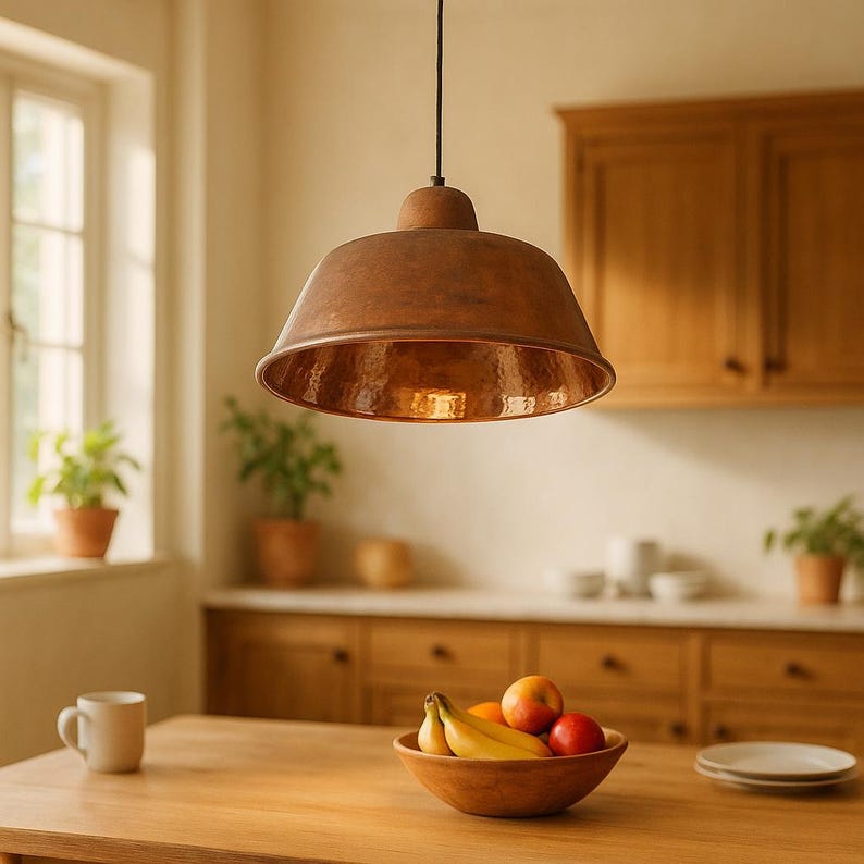 Rustic Copper Dome Pendant Light – Handmade Farmhouse Kitchen Ceiling Lamp